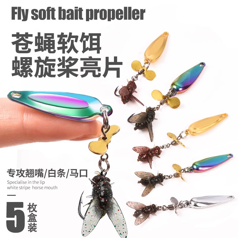 螺旋桨亮片路亚假饵飞蝇钩仿生苍蝇软饵微物远投亮片马口白条翘嘴