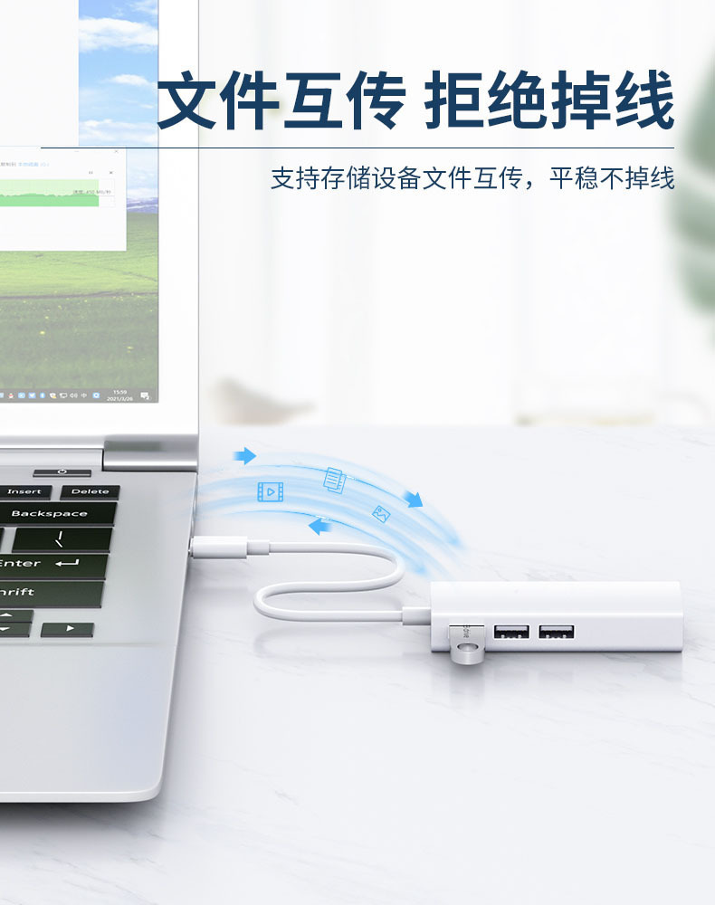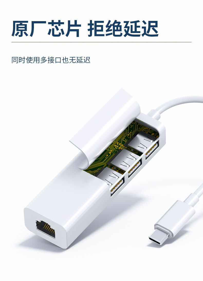 Type-C百兆网卡带线type-C转RJ45以太网卡USB2.0多口HUB集线器