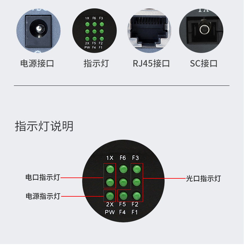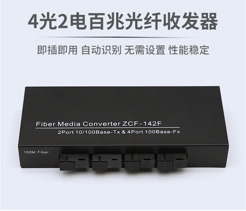 百兆4光2电光纤收发器光电转换器汇聚级联SC接口光纤交换机一台