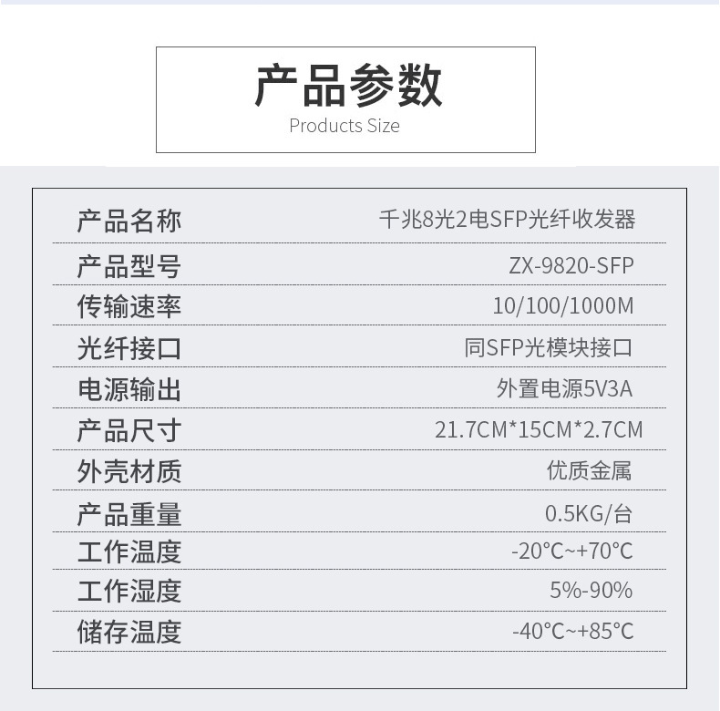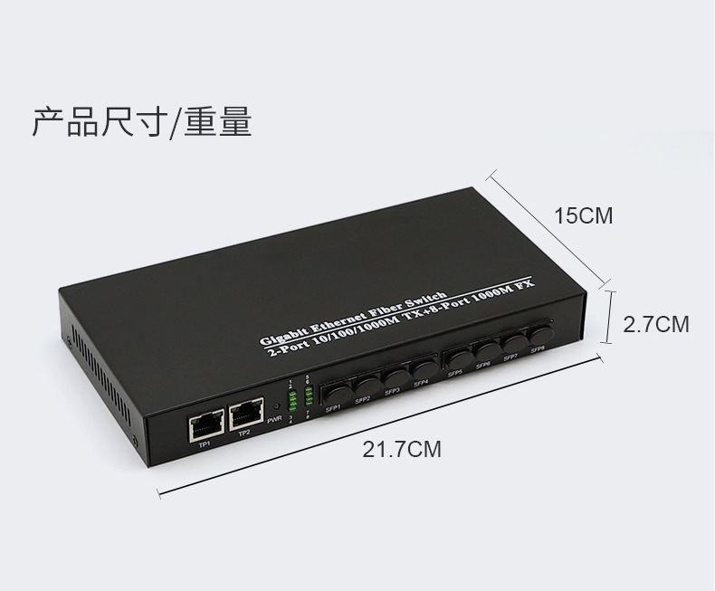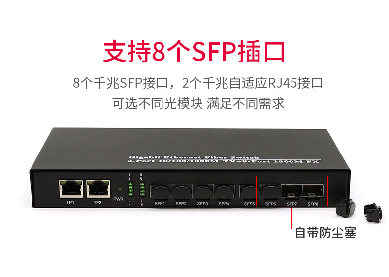 千兆8光2电收发器8口SFP光纤交换机8个千兆SFP光转电LC口单多模