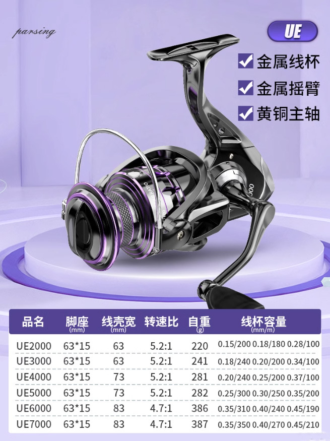 • 3000系列-UE纺车轮【金属雕刻线杯+黄铜主轴+金属摇臂】