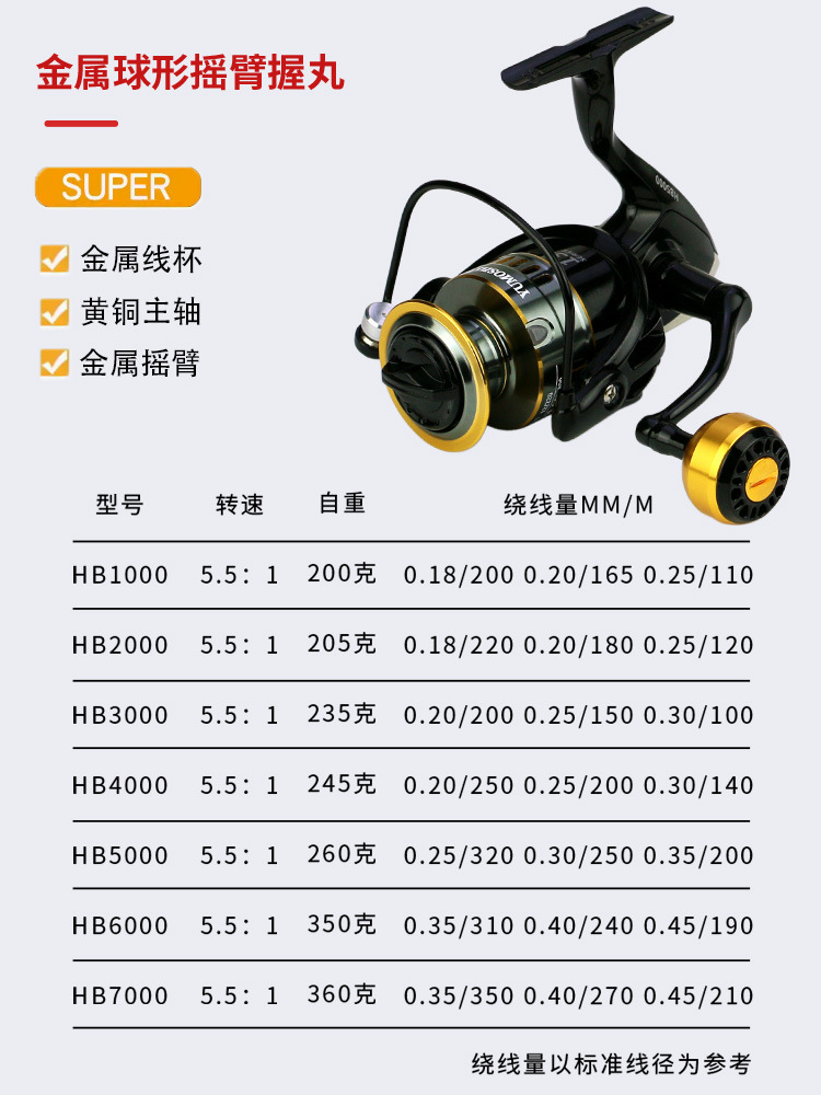 • 2000系列-HB纺车轮【金属球握丸】-全金属防海水