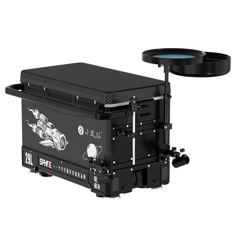 - 29L灰色碳素纹平盖款钓箱(三件套+双伞架+饵盘+工具层)