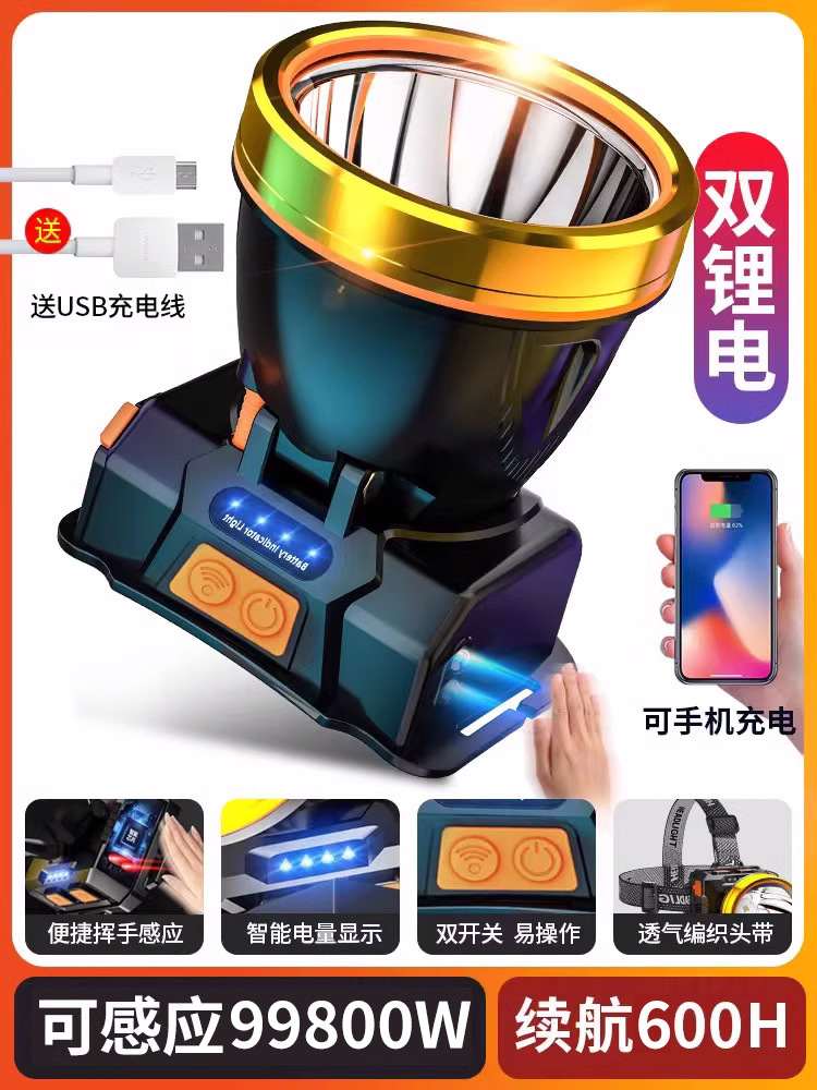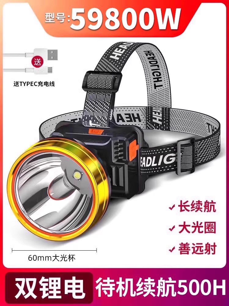 夜钓鱼头灯强光充电超亮头戴式户外超长续航手电筒矿灯轻小号专用