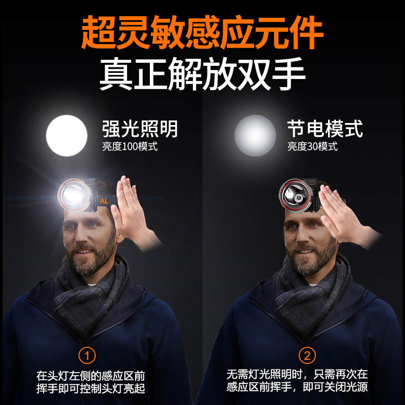 强光高流明充电夜钓鱼矿灯超亮头戴式户外感应超长续航双锂电头灯