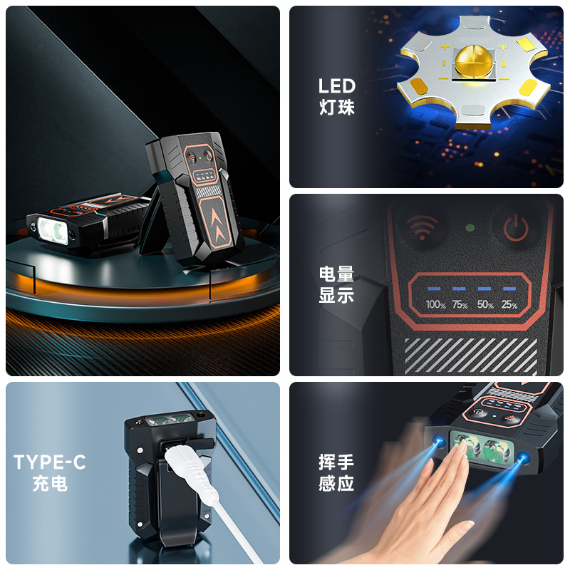 新款智能感应帽夹灯钓鱼专用夜钓灯帽檐灯超轻头戴式防水感应头灯