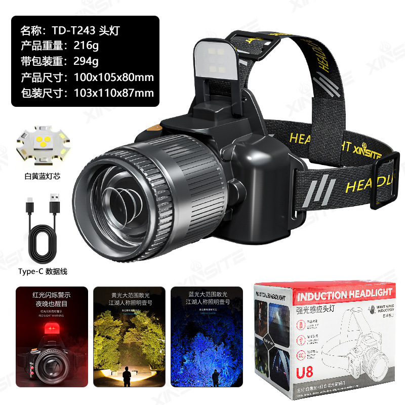 强光头灯远射可充电防水超亮头戴式夜钓灯矿灯超长续航头灯