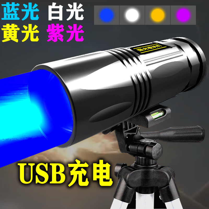 强光夜钓灯钓鱼专用灯变焦蓝白紫黄光大功率夜光台钓手电筒