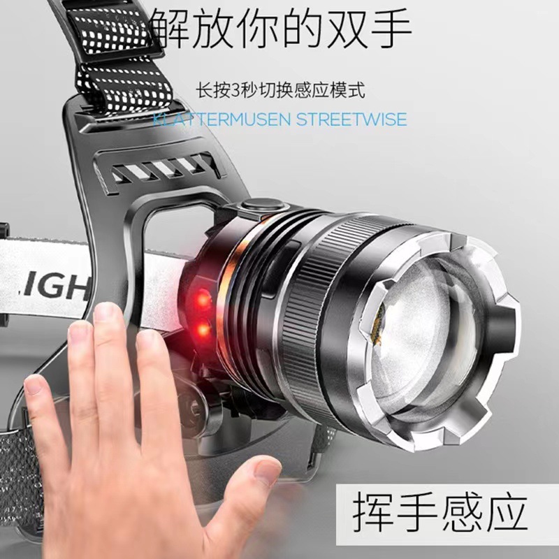 户外感应头灯强光头戴式长续航头灯钓鱼专用led夜钓頭燈