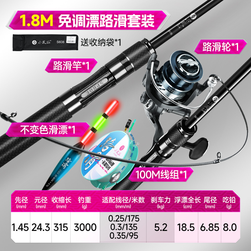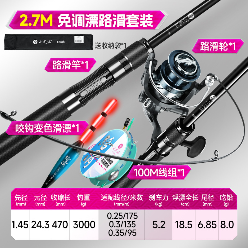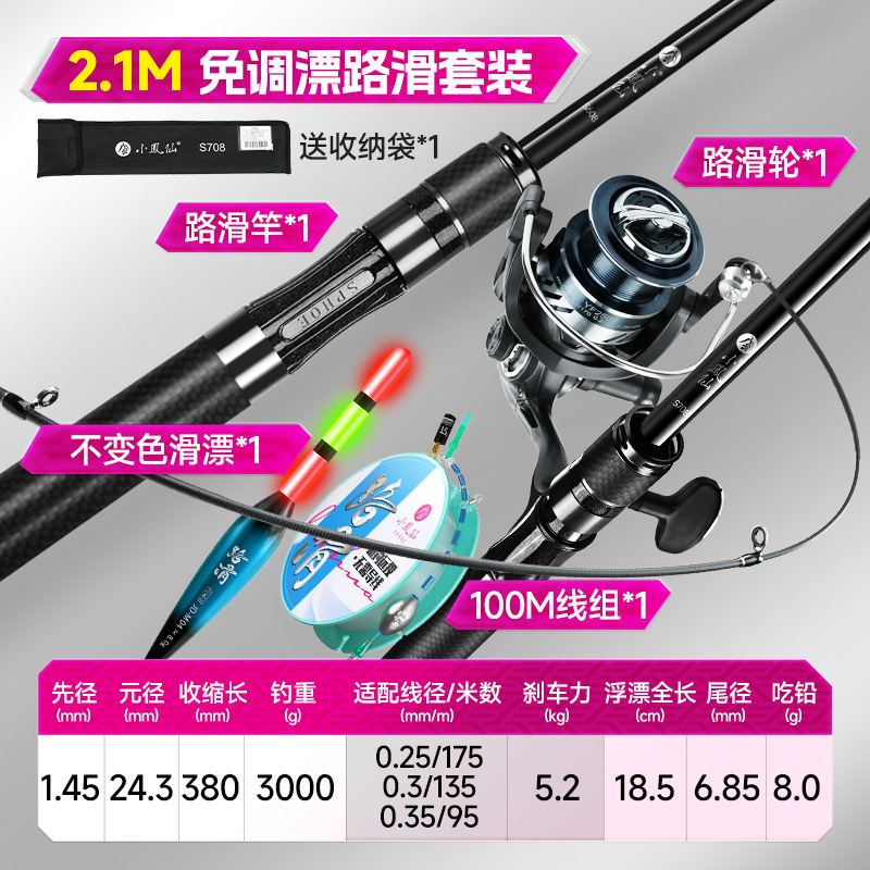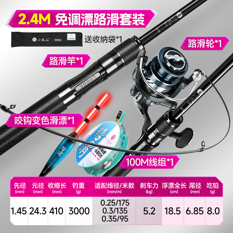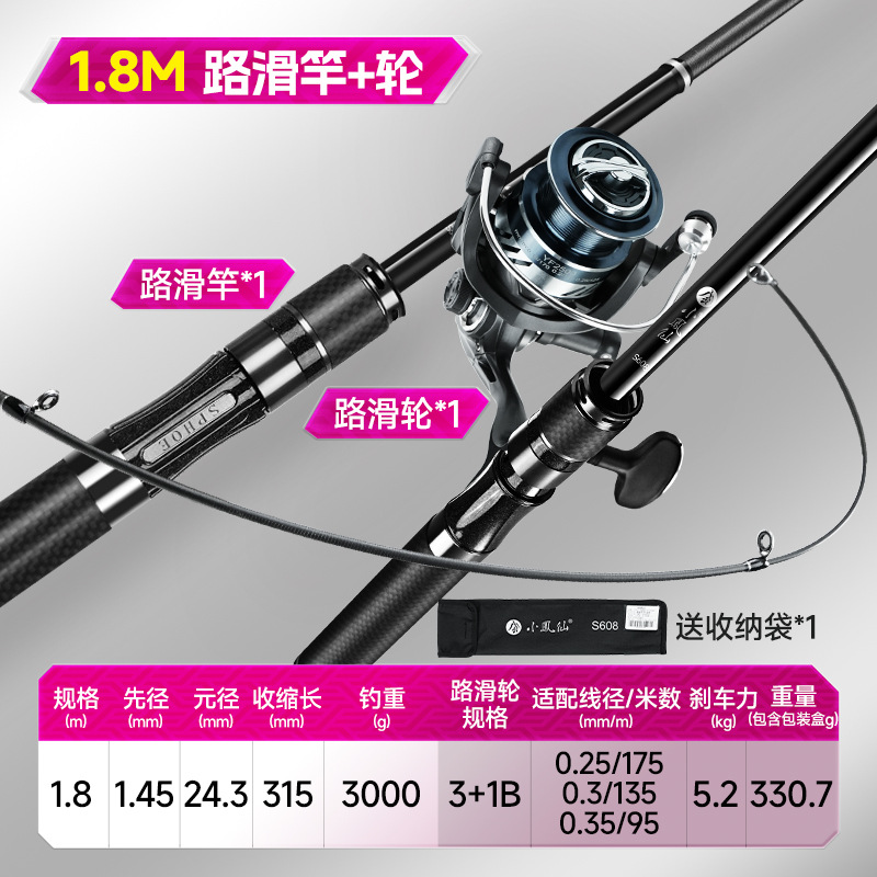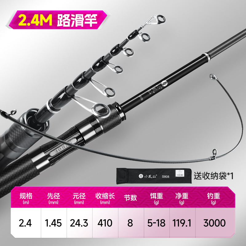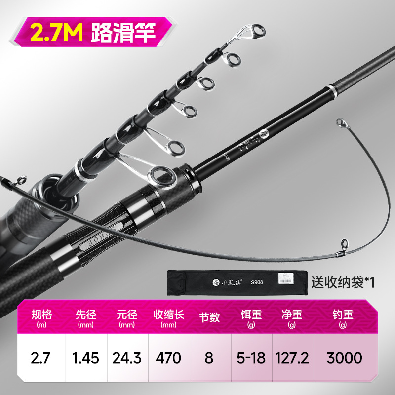 小凤仙路滑鱼竿套装伸缩路亚竿便携式路滑竿短节远投钓鱼竿
