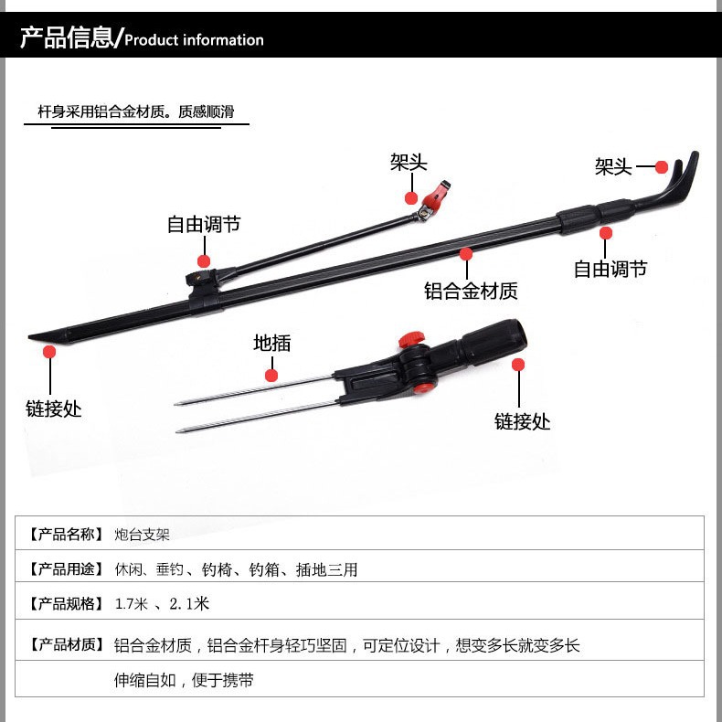 铝合金炮台支架钓鱼竿支架台钓炮台支架带地插鱼杆支架伸缩
