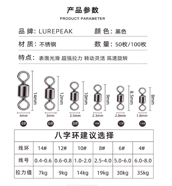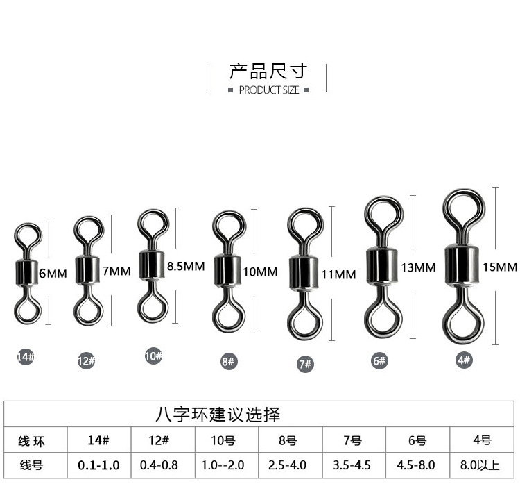 八字环钓鱼小配件路亚转环快速子线连接器小号8字环不锈钢连接环