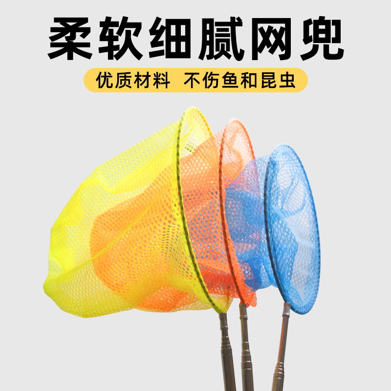 儿童不锈钢伸缩捞鱼网渔网小网兜折叠桶抄网渔网捕捉昆虫网戏水