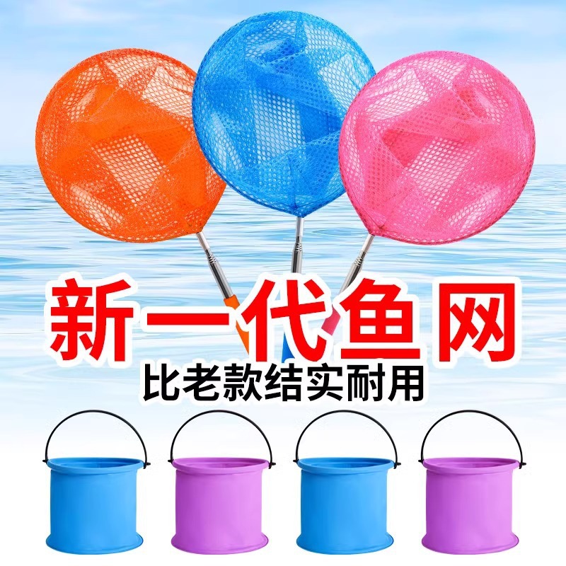 儿童捞鱼网抄网渔网网兜小鱼捕鱼抓鱼蝴蝶捕虫捞网沙滩玩具可伸缩