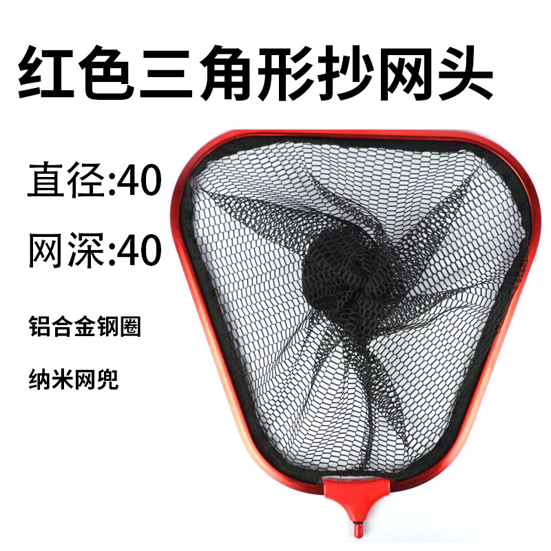 铝合金抄网头防挂钩纳米网布35-50cm捞鱼网兜三角形圆形抄网头