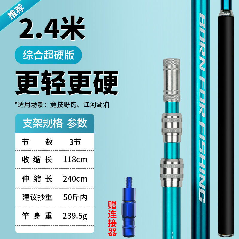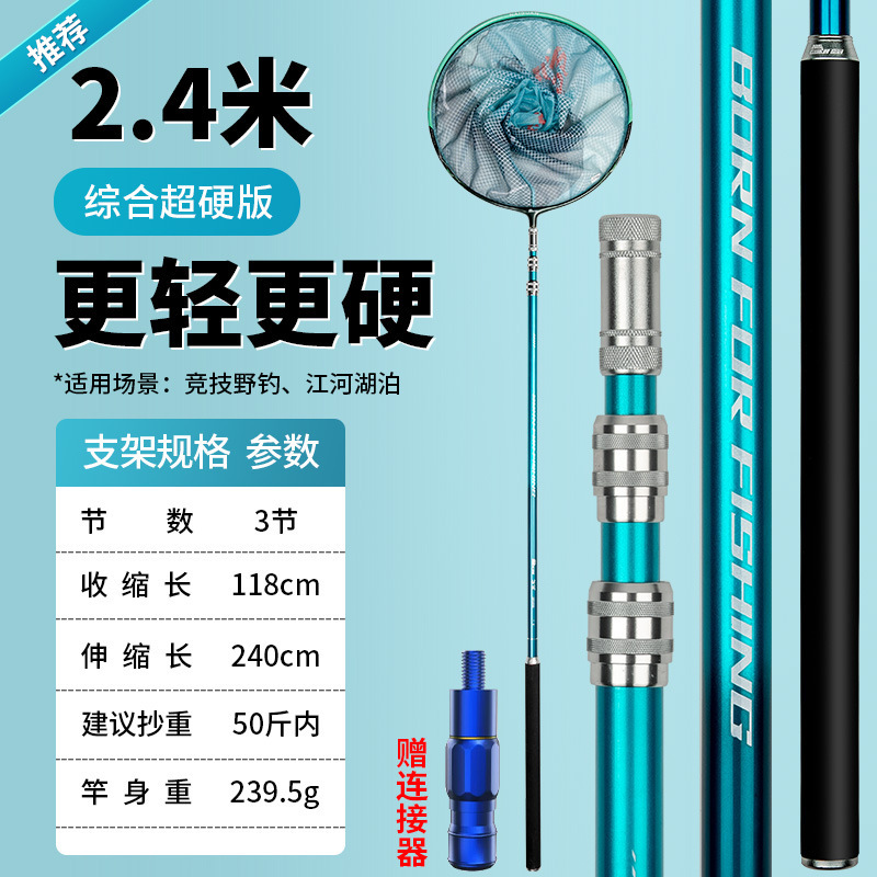 2.4米抄网杆+40cm速干网头+抄网连接器