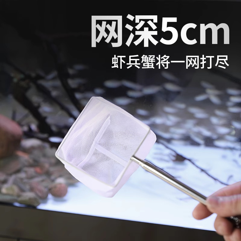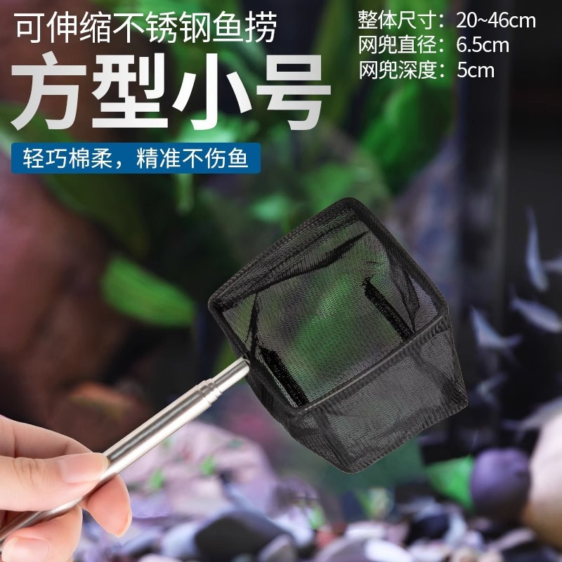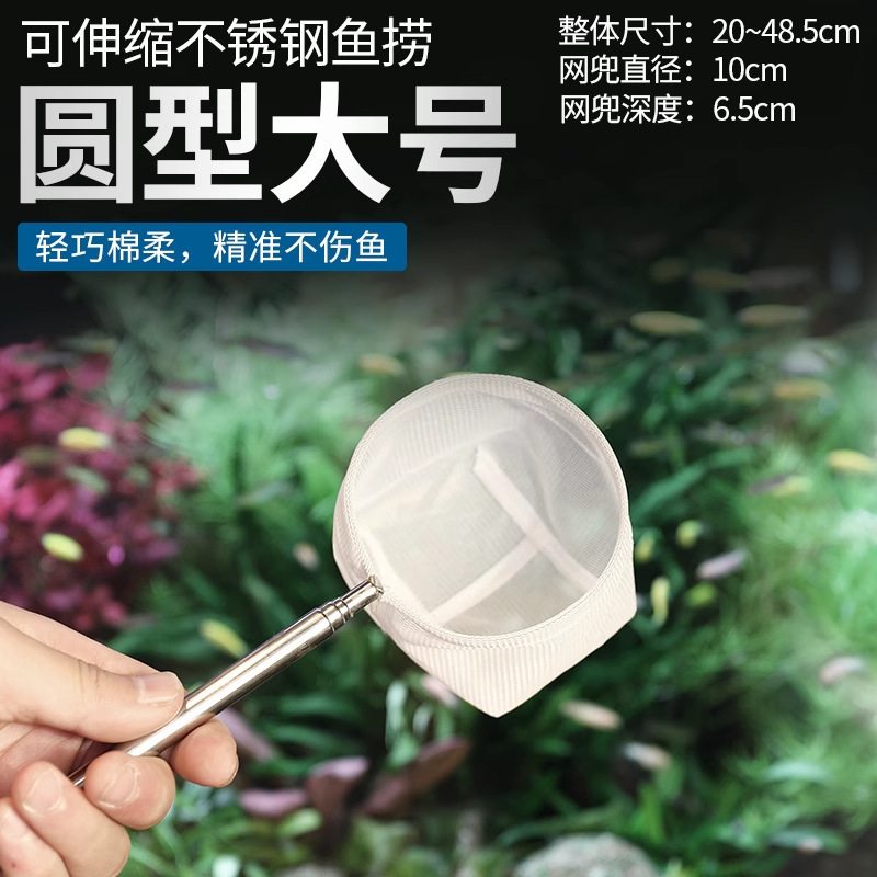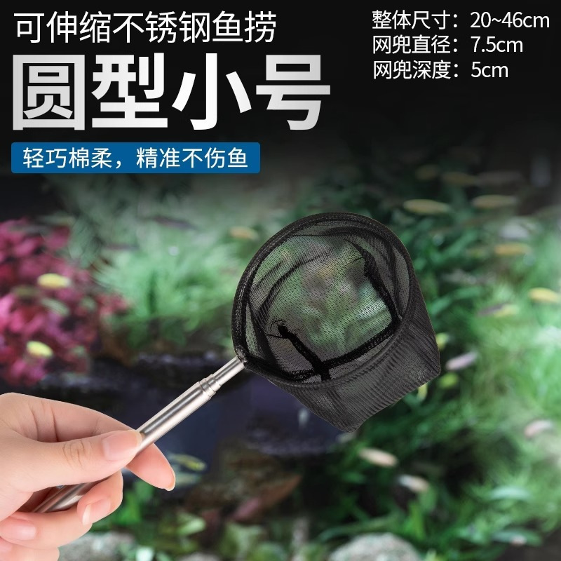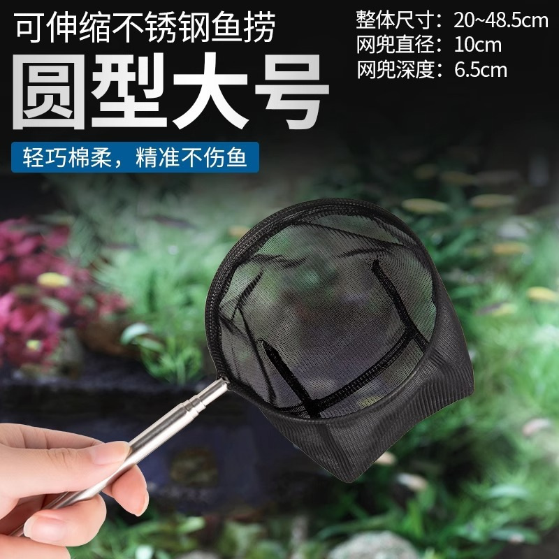 不锈钢可伸缩捞鱼网鱼缸捞小号3d渔捞抄网兜密网热带观赏鱼捞鱼网