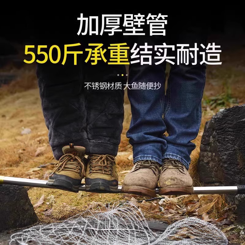 新款不锈钢抄网伸缩杆捞鱼网组合套装全套可折叠抄鱼网兜渔具