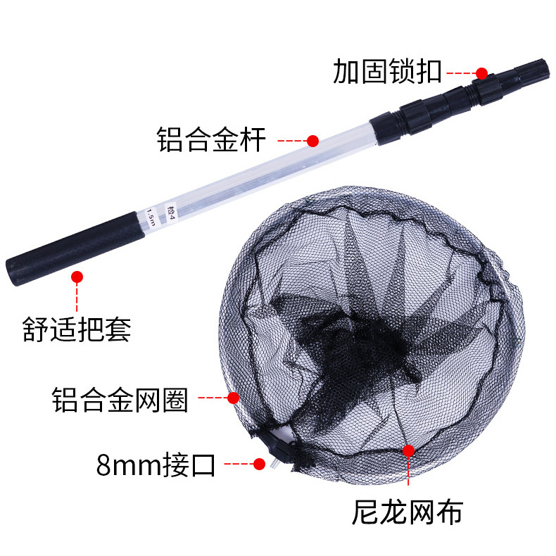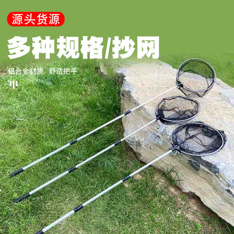 铝合金抄网伸缩杆抄网套装自由定位捞鱼网兜折叠网抄鱼网