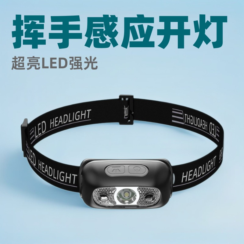 超亮可充电LED头灯强光挥手感应便携头戴式手电筒夜钓鱼头灯