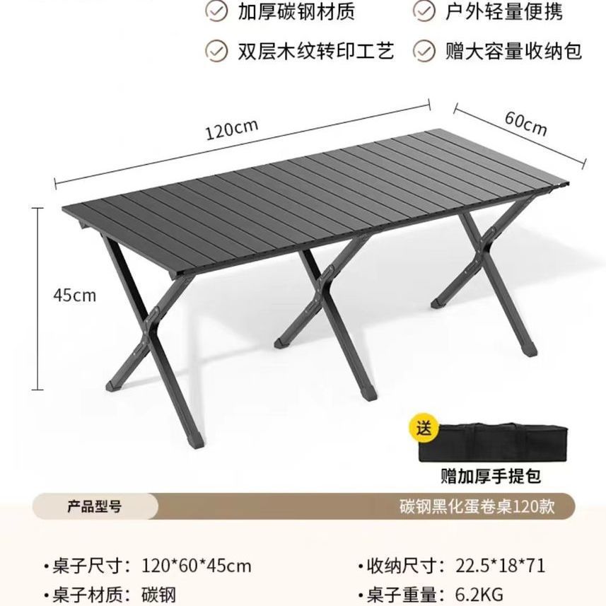 - 【碳钢款】120耀黑蛋卷桌+收纳袋
