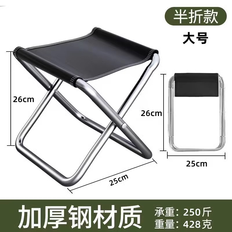 【半折叠款】黑色中号(加粗碳钢管加厚椅面)