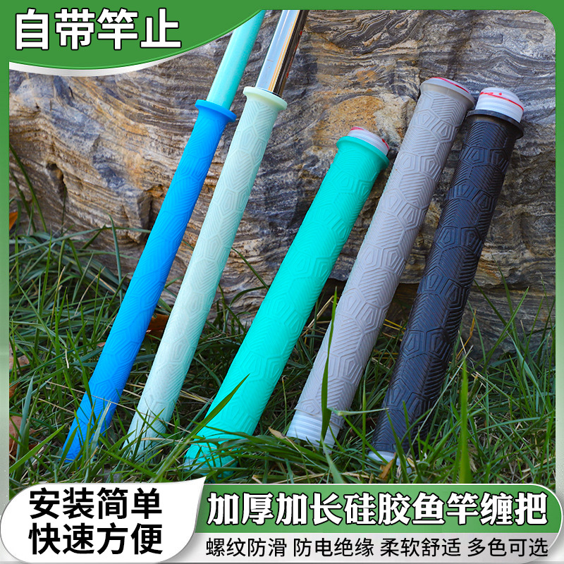 加厚柔软耐磨握把一拉得鱼竿把套带杆止硅胶手把套防滑鱼竿缠把带