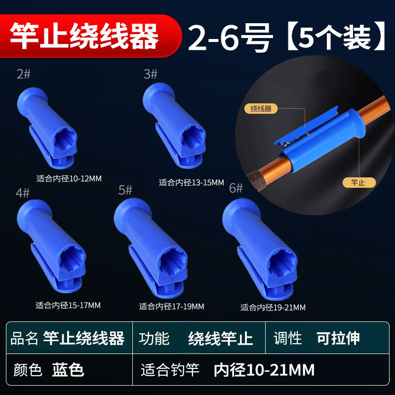 - 鱼竿竿止收线器【蓝/2-6号】5支装