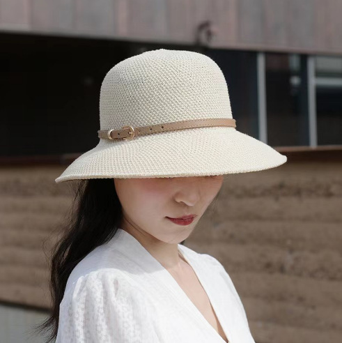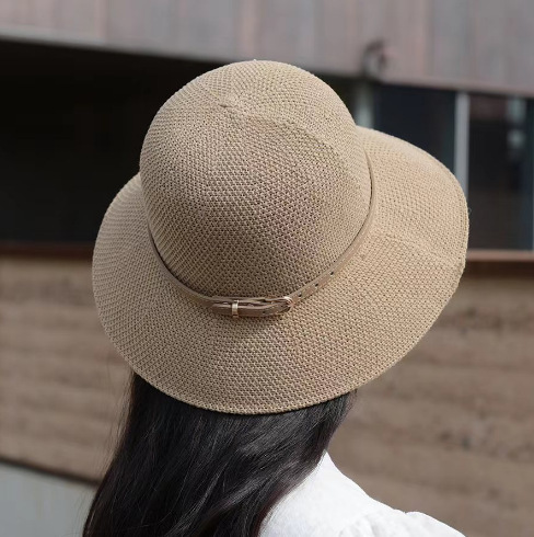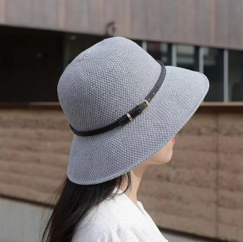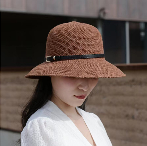 春夏防晒帽洋气百搭渔夫帽女士太阳帽盆帽新款洋气时尚皮扣遮阳帽