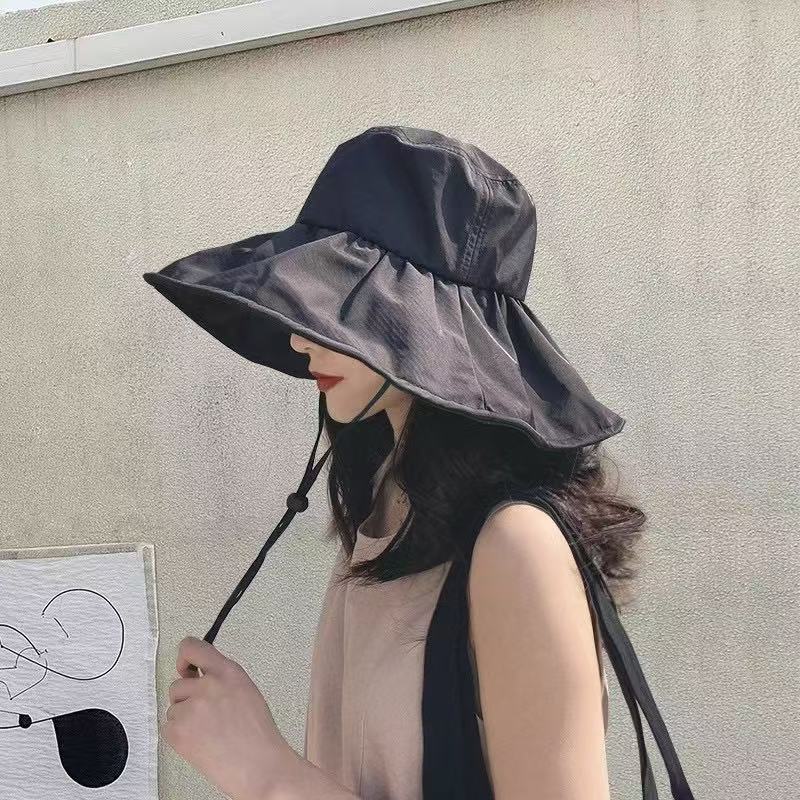 夏季新款黑胶遮阳防晒帽户外出行可折叠塑形太阳帽大檐渔夫帽子女