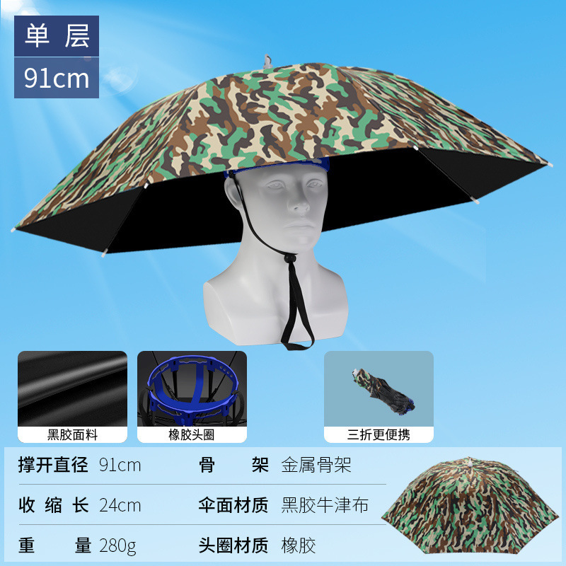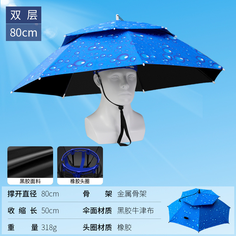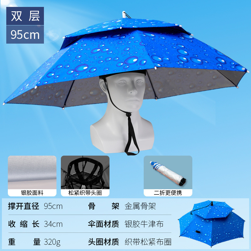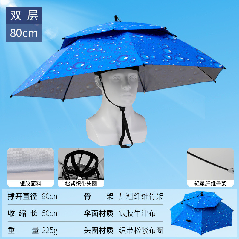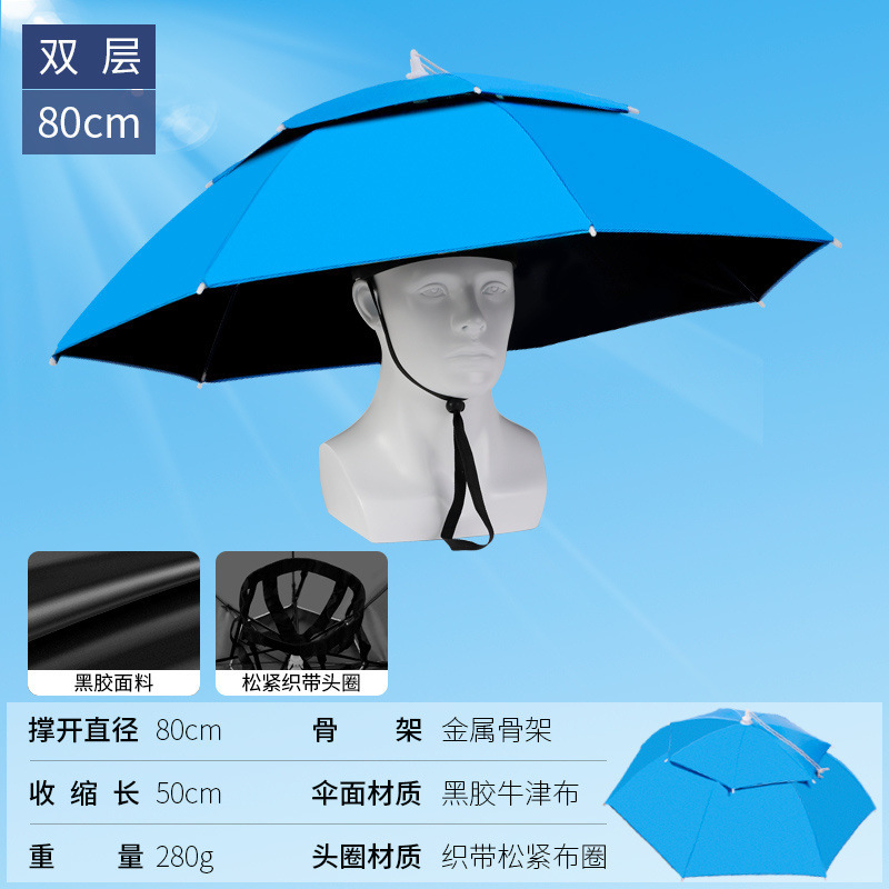 伞帽头戴雨伞帽子钓鱼头戴太阳伞户外采茶环卫防晒斗笠伞折叠大号