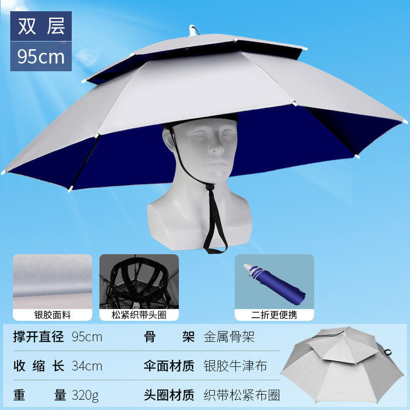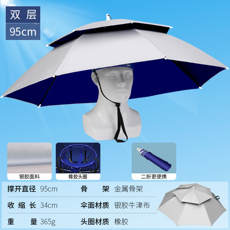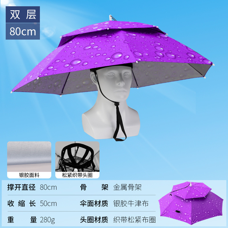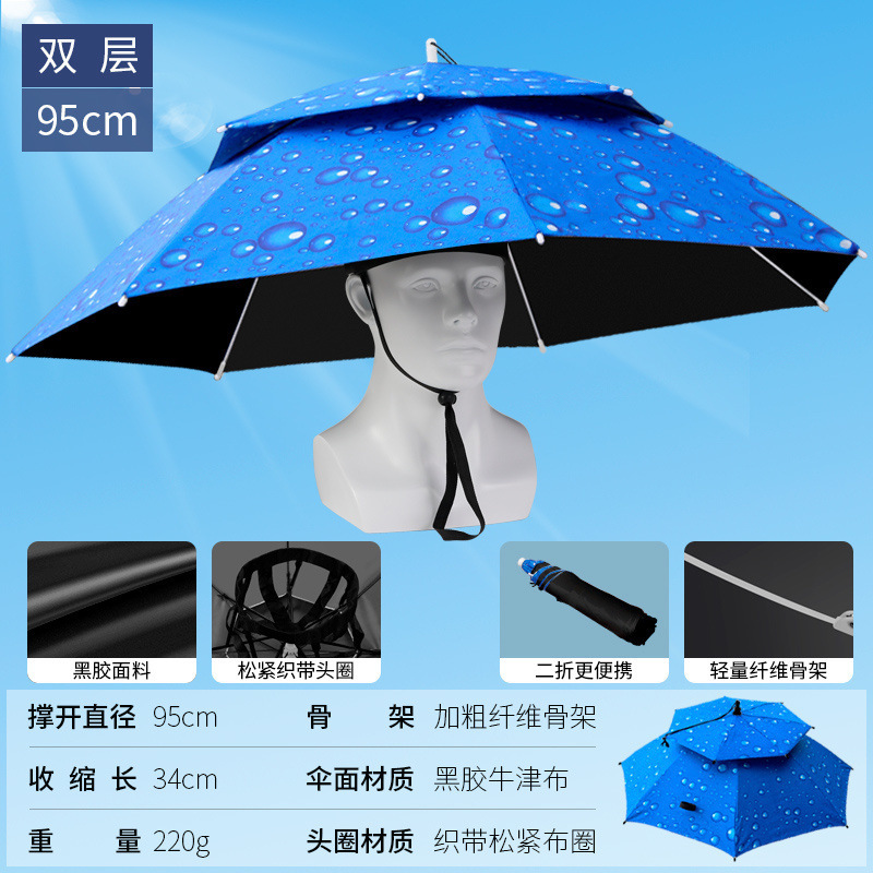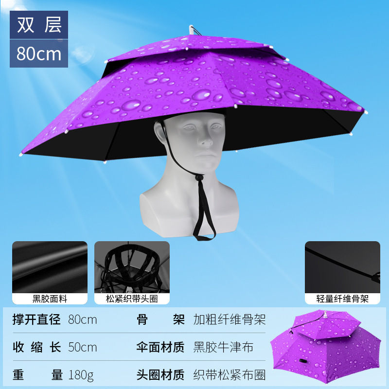 伞帽头戴雨伞帽子钓鱼头戴太阳伞户外采茶环卫防晒斗笠伞折叠大号