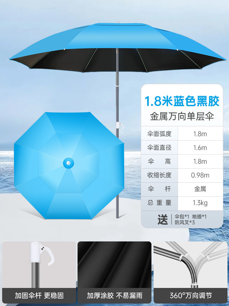 - 【单层加厚】黑胶万向伞-1.8米蓝面