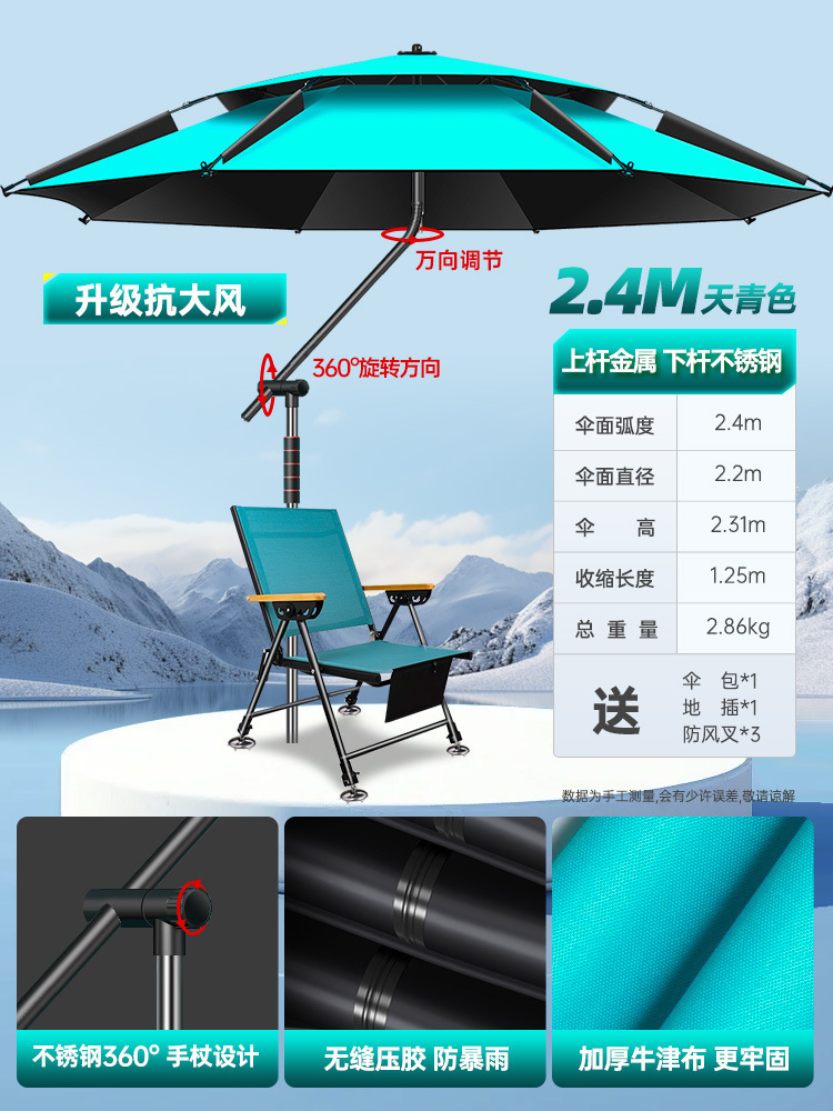 - 【双360调节加硬不锈钢零透光防暴雨】牛津布黑胶2.4米蓝黑