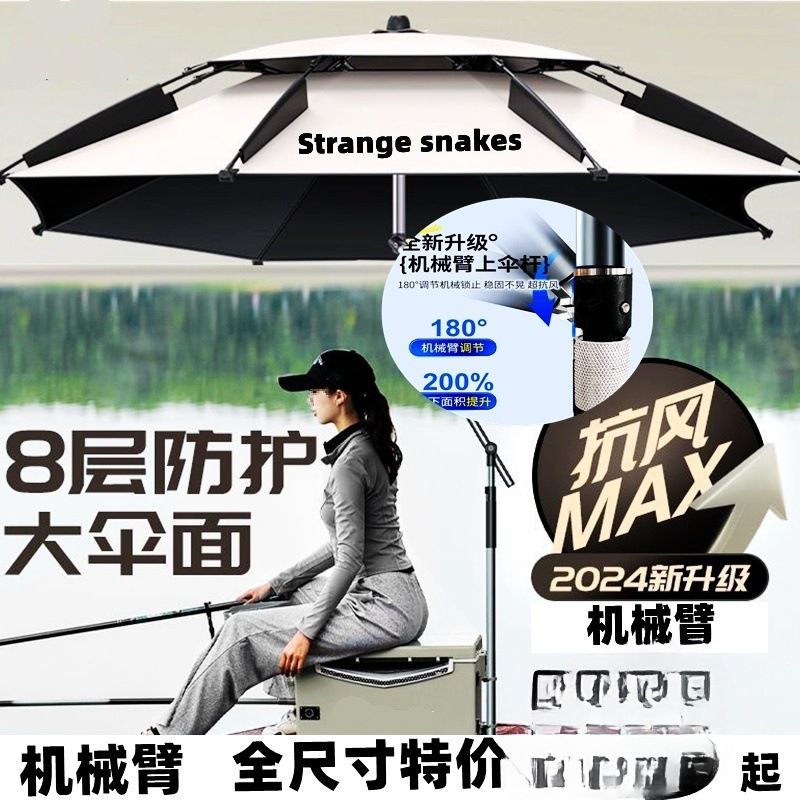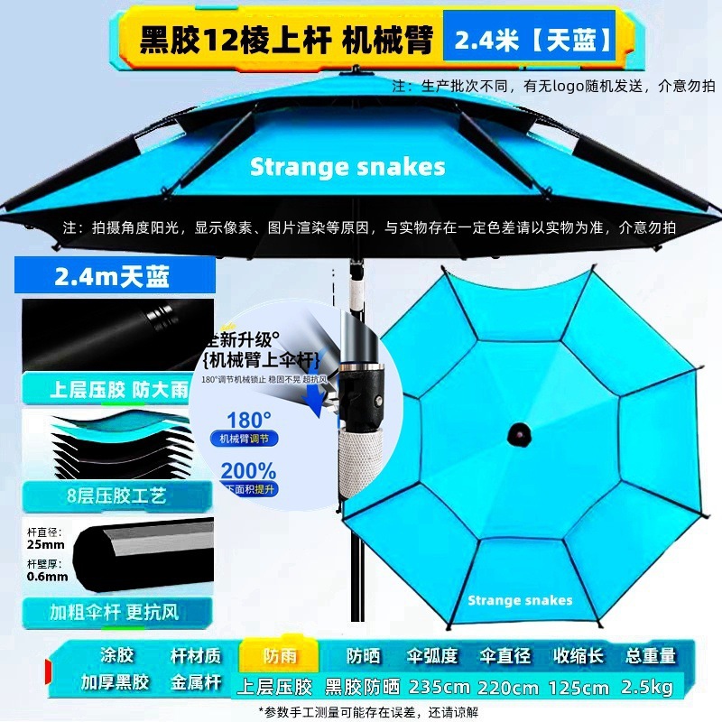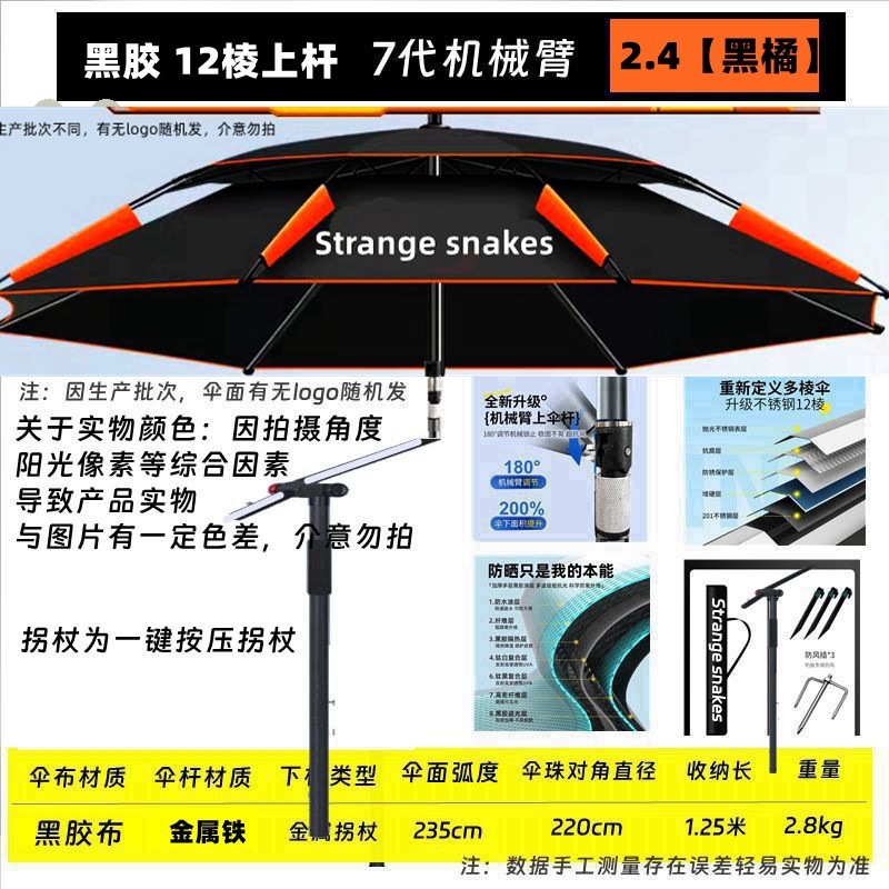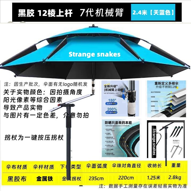 钓鱼万向钓伞防雨新款加厚防晒拐杖户外垂钓雨伞遮阳伞机械臂