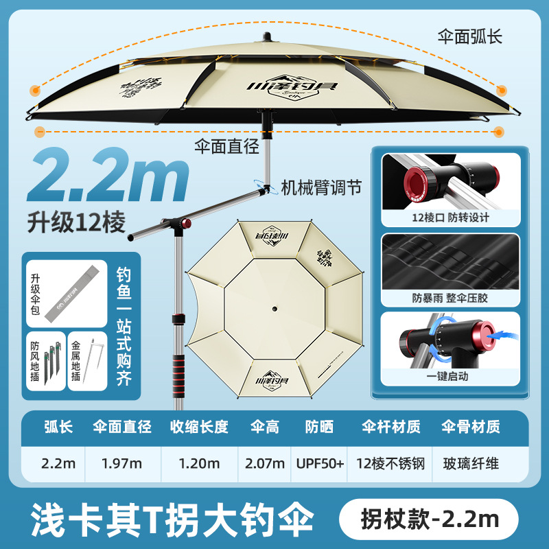 12棱防转拐杖伞【2.2m浅卡其】