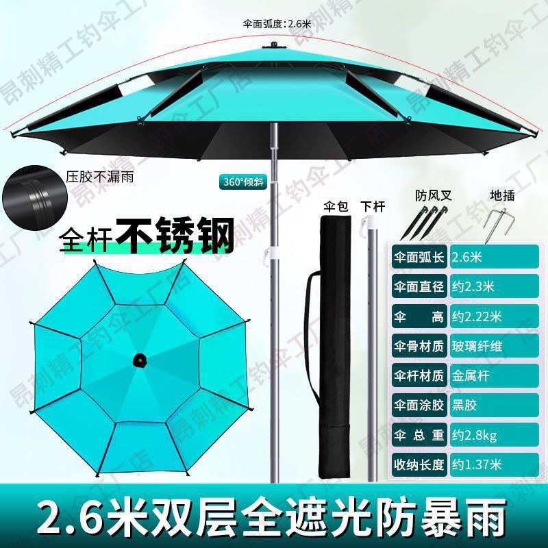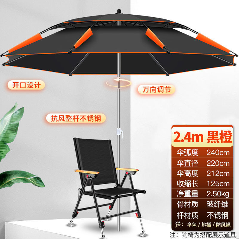 加厚钓鱼伞2.4米大钓伞万向防雨折叠鱼伞垂钓伞遮阳伞渔具安比环