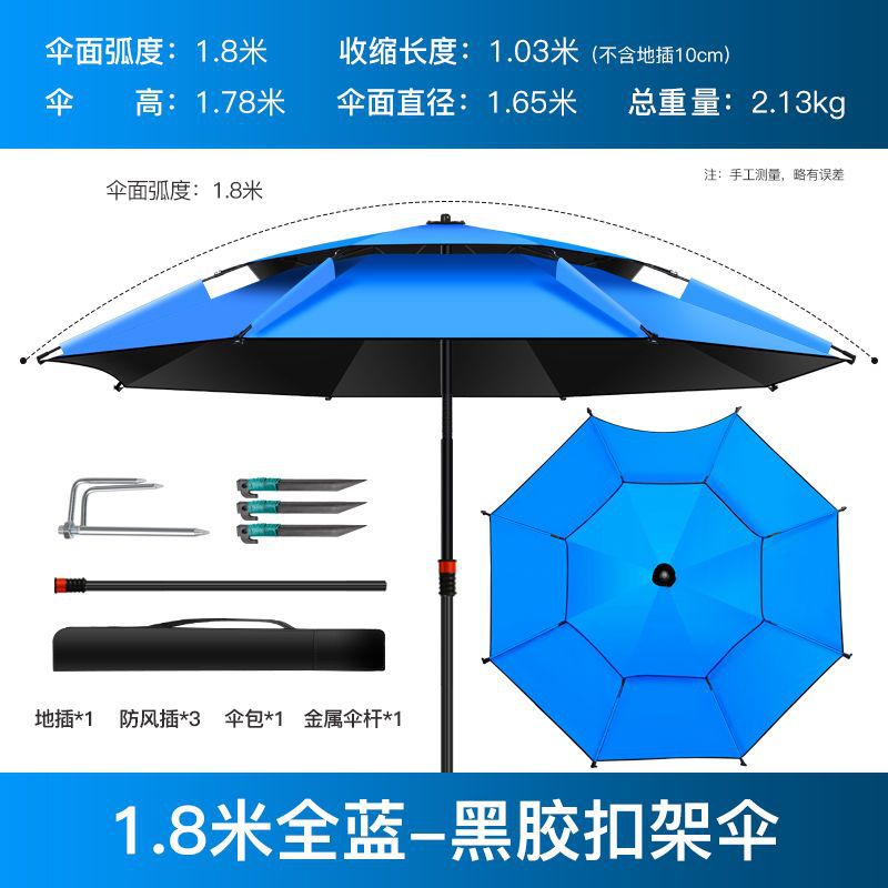 - 防锈加硬伞【抗风防雨】1.8米蓝黑胶⚑✓