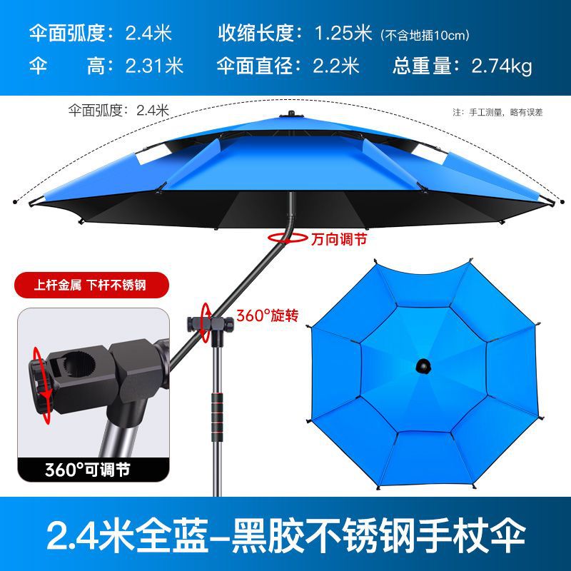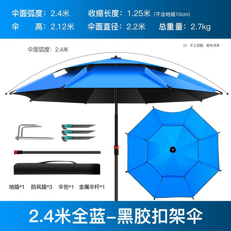 - 防锈加硬伞【抗风防雨】2.4米蓝黑胶⚑✓