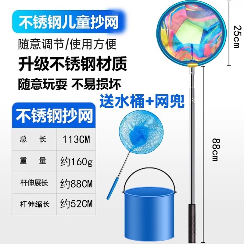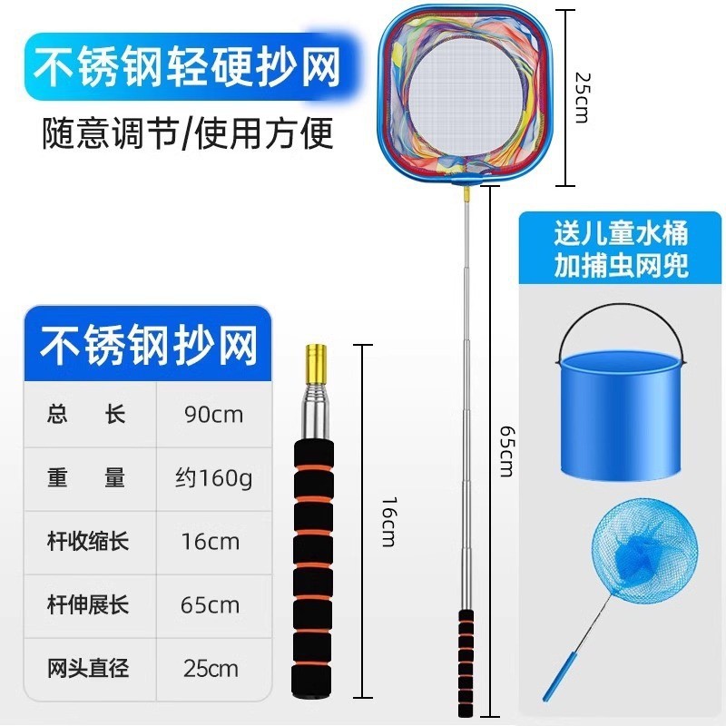 - 圆形不锈钢杆抄网-送折叠水桶+捕虫网兜