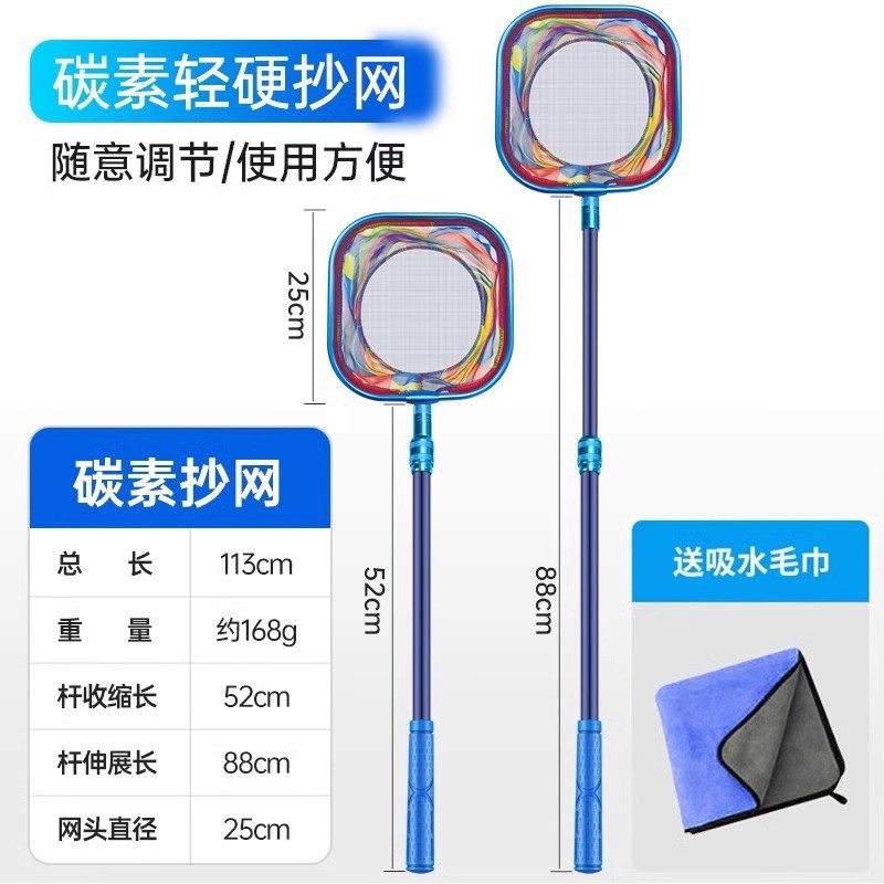- 方形碳素款抄网-送吸水毛巾+折叠水桶