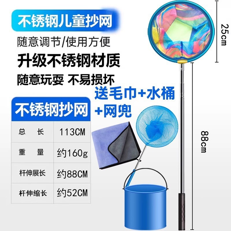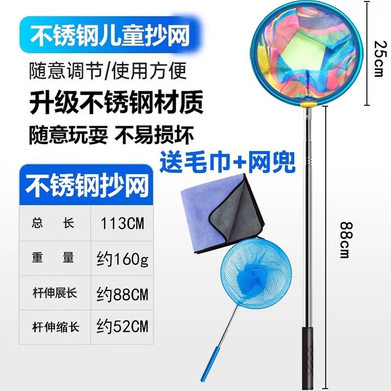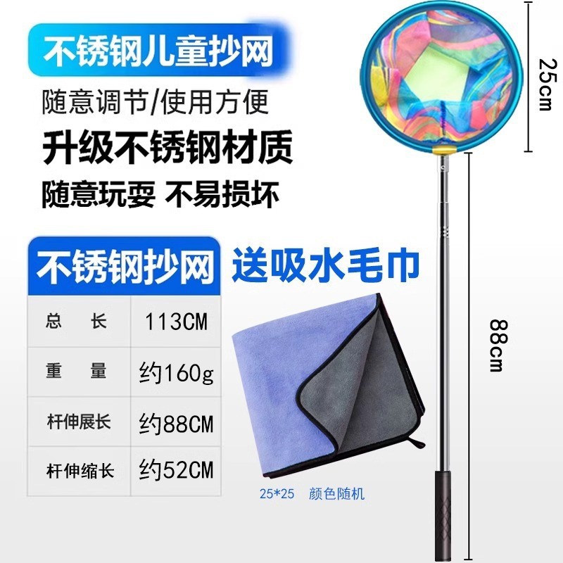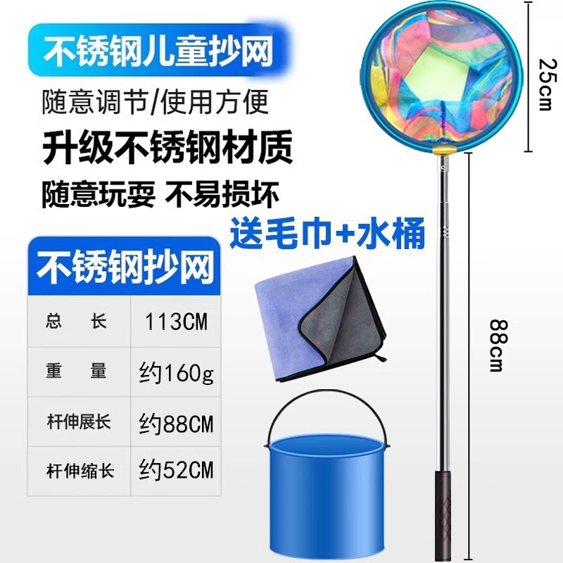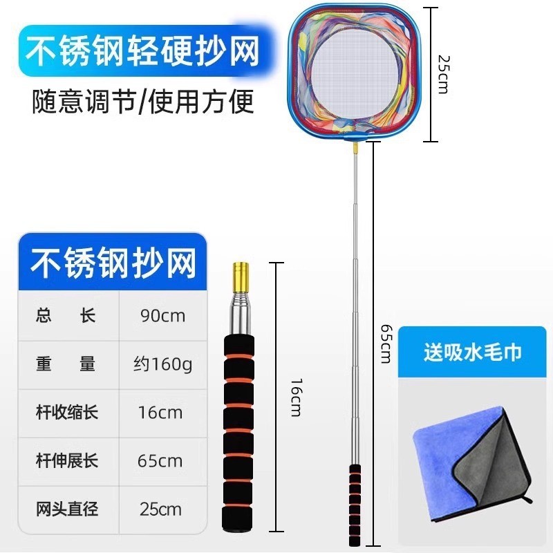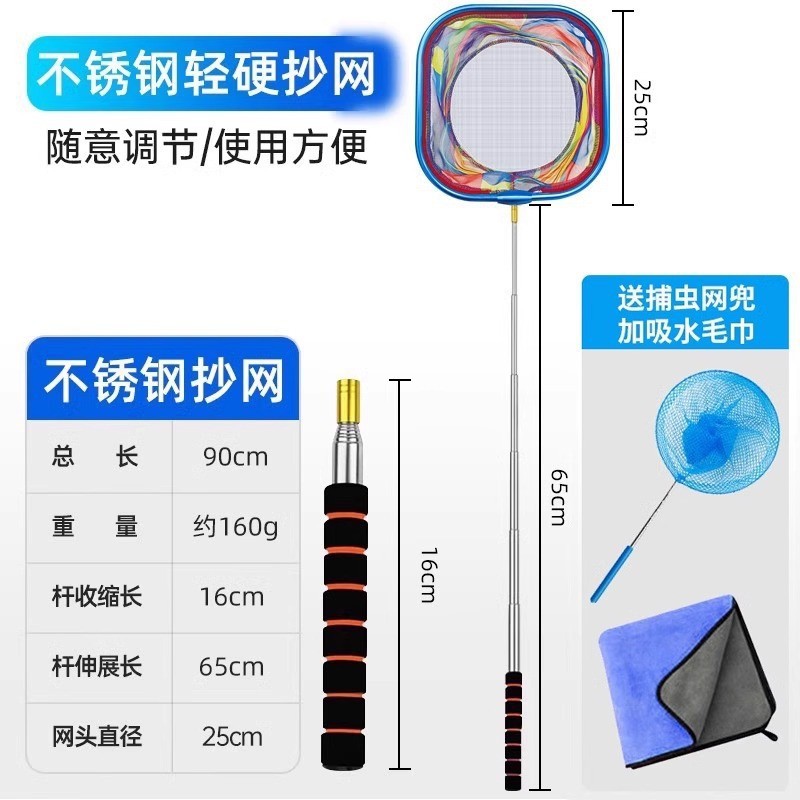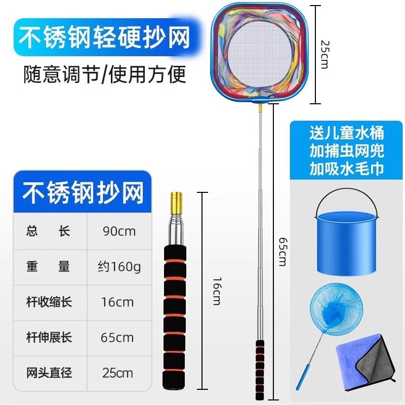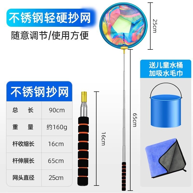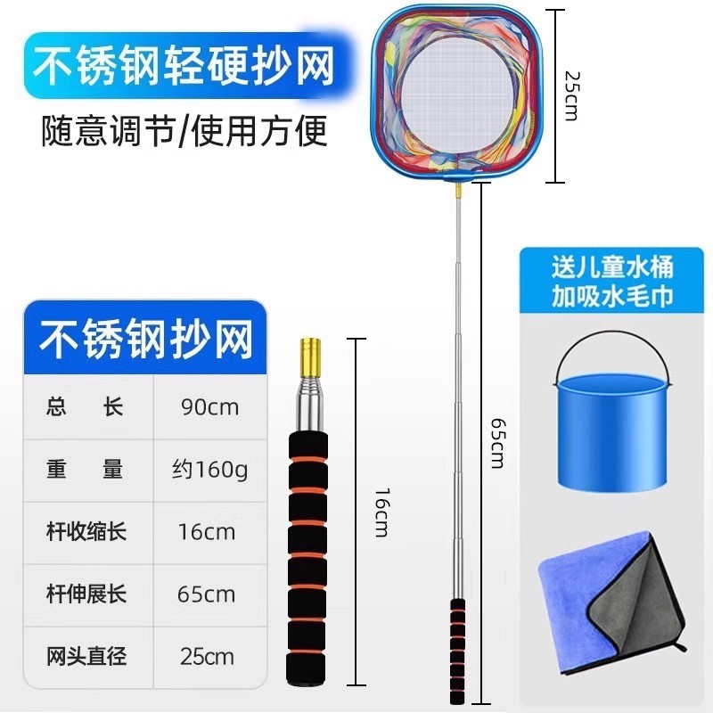 - 圆形不锈钢杆抄网-送吸水毛巾+折叠水桶