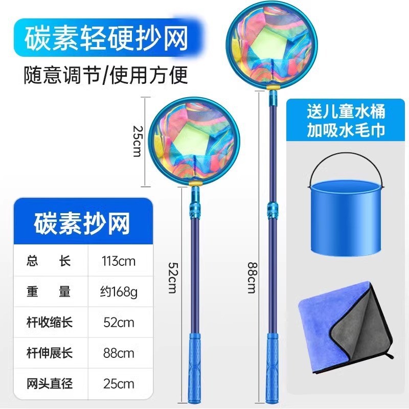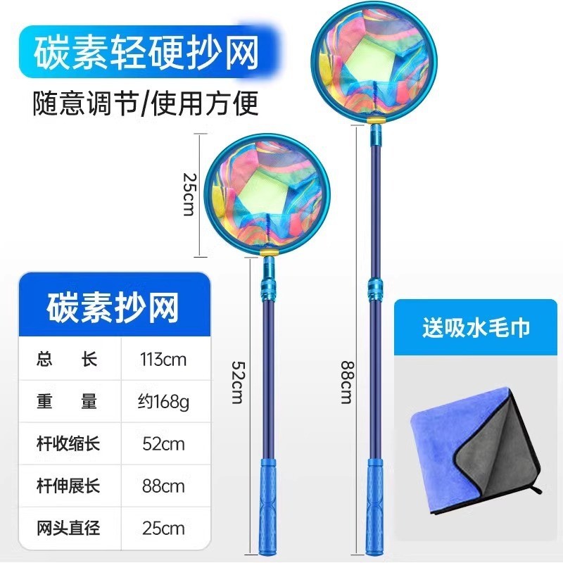 - 圆形碳素款抄网-送吸水毛巾+折叠水桶