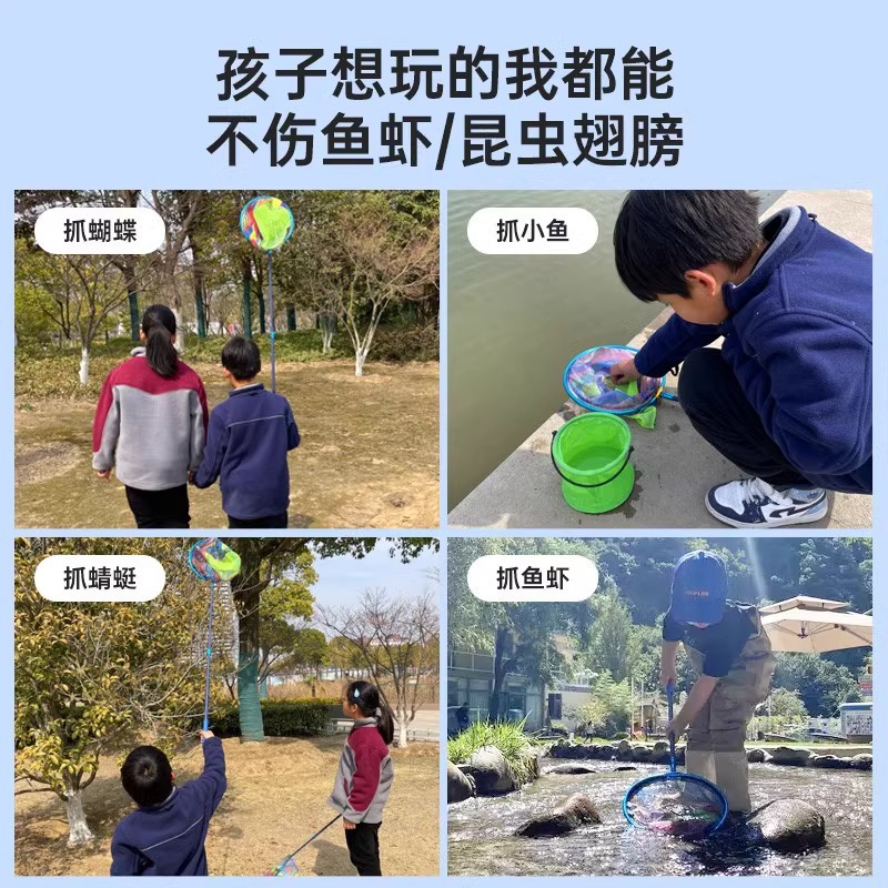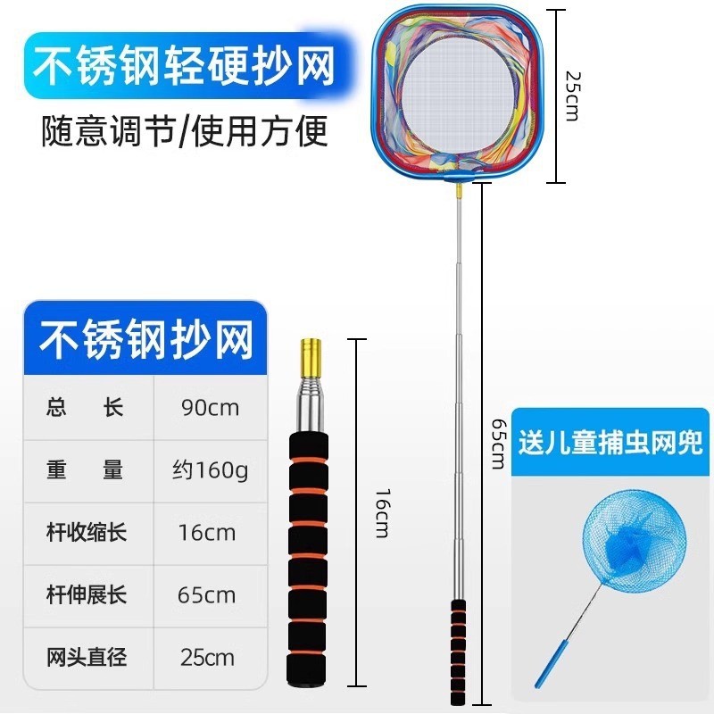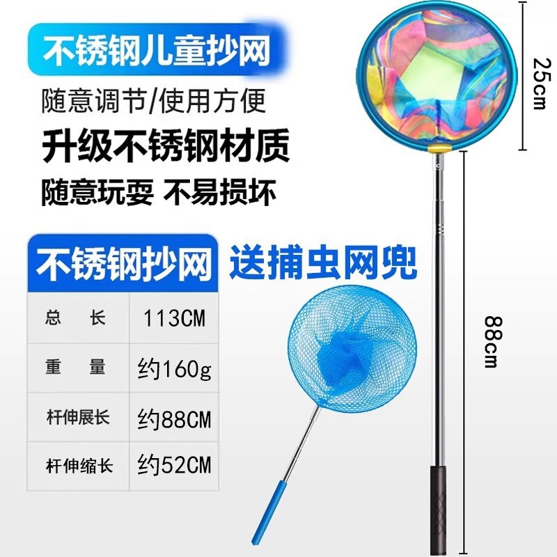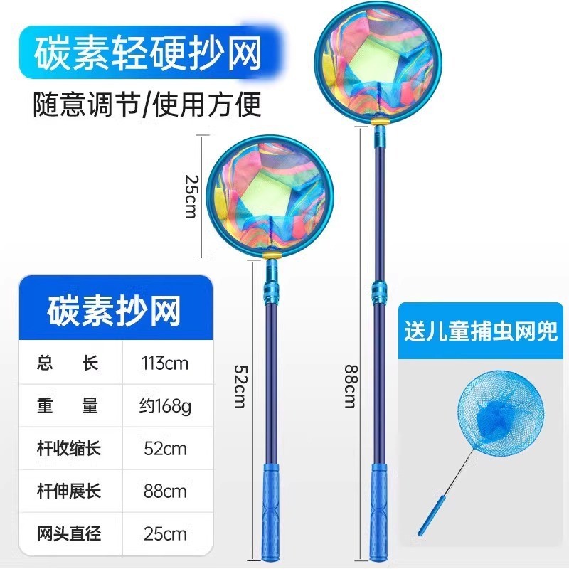 新款儿童抄网碳素网竿加厚伸缩网兜不锈钢捕小鱼虾蝴蝶捕虫网玩具