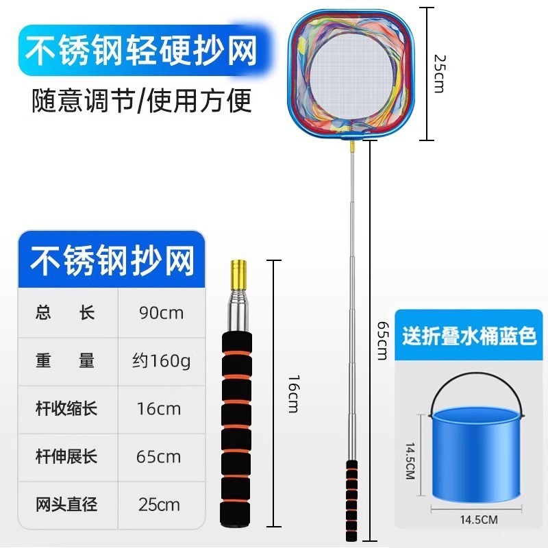 - 圆形不锈钢杆抄网-送折叠水桶