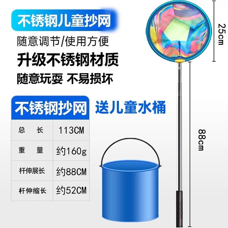 - 圆形不锈钢抄网-送折叠水桶+捕虫网兜