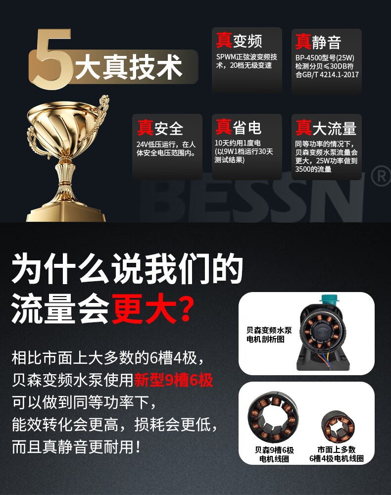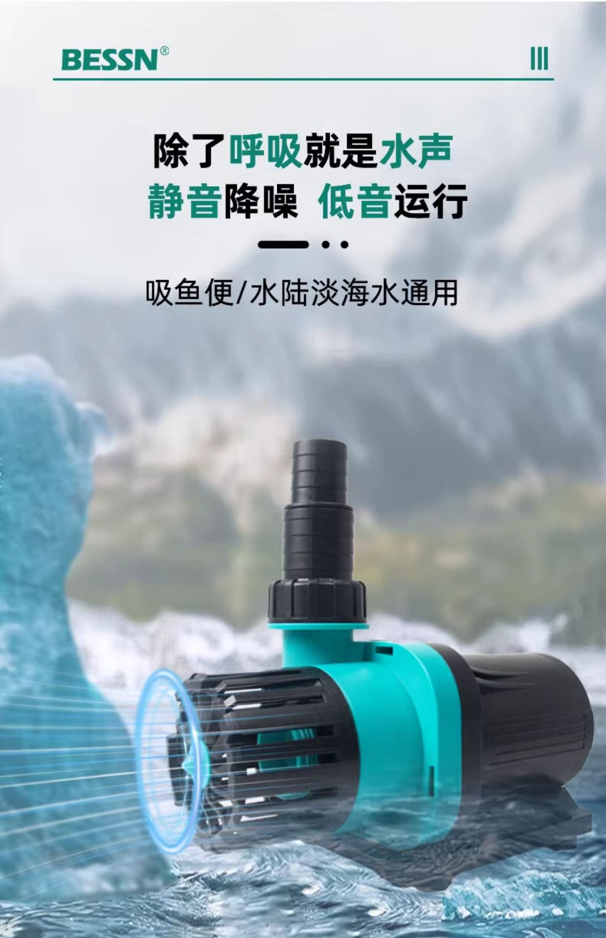 BESSN智能变频水泵静音鱼缸过滤循环抽水假山鱼池直流低压潜水泵