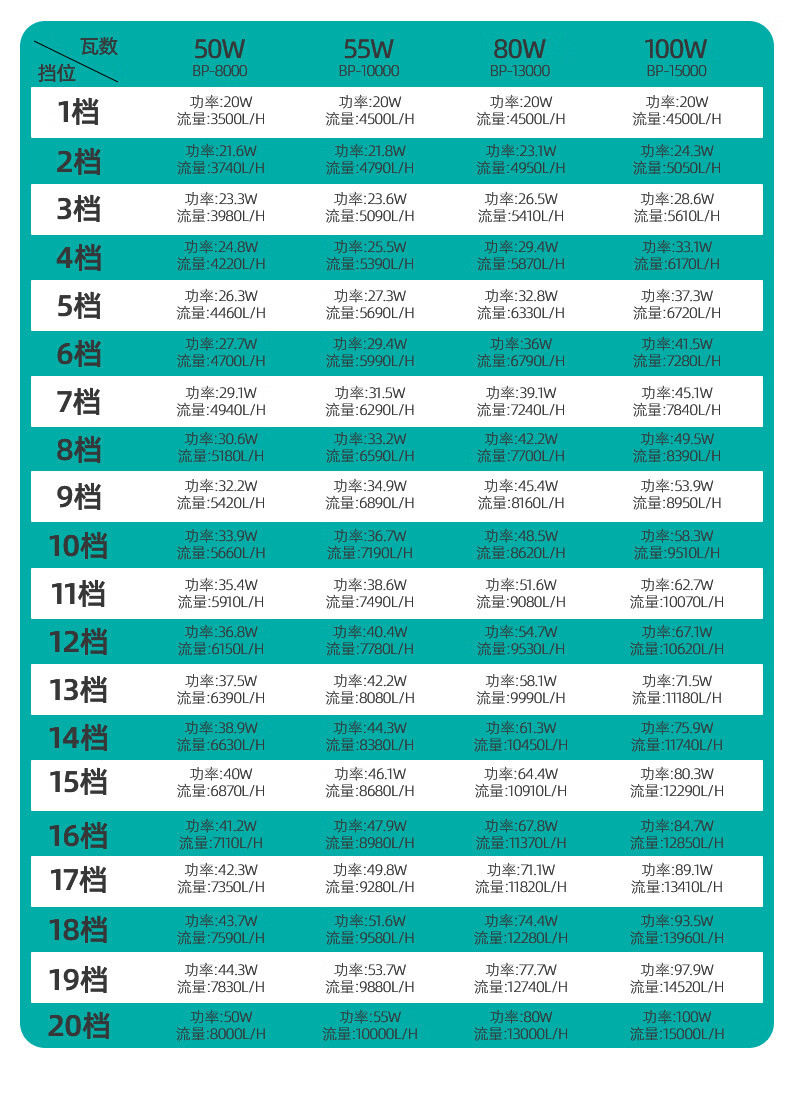 50W【流量3500-8000L/H】