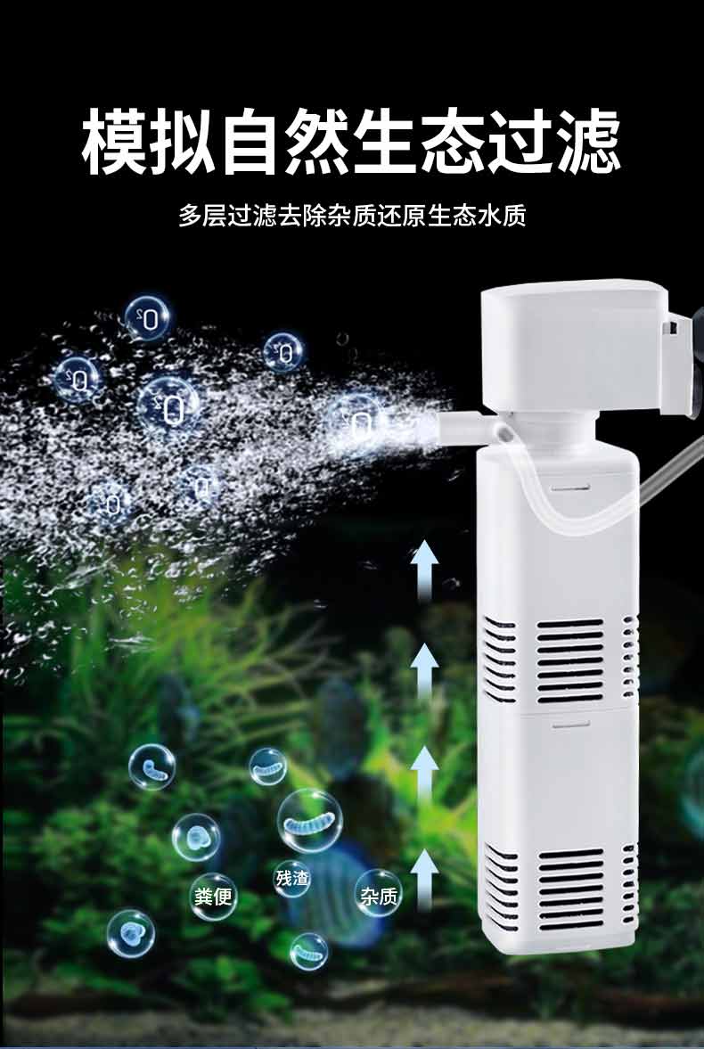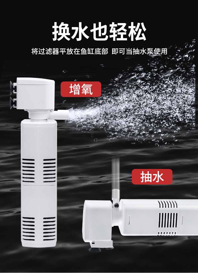 松宝鱼缸过滤器三合一过滤泵循环系统养鱼小型氧气泵内置小水族箱