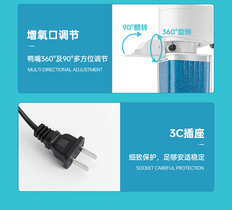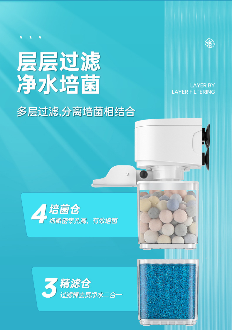 京业鱼缸过滤器三合一静音增氧泵水族箱循环泵吸便内置水泵净水器